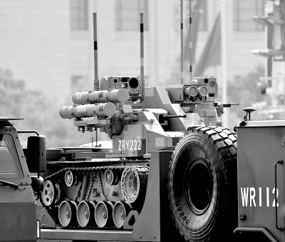 陆上无人作战装备。新华社发