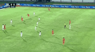 上半场比赛第15分钟,中国队中路邝兆镭拿球直接传中吊禁区,高中锋赵松源插上头球破门,中国队打破僵局,中国1比0印尼。