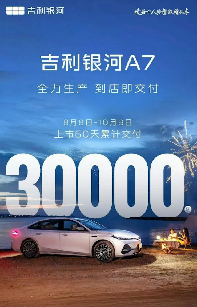 今年8月份,吉利推出了全新的银河A7,而两个月过去了,官方最新数据显示,其交付量已经超过了30000辆,成为了爆款!