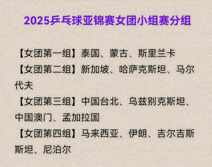 女团小组赛中,中国台北、泰国、新加坡3队实力最雄厚,不出意外的话,最终的2个晋级名额就将在这3支球队中产生。