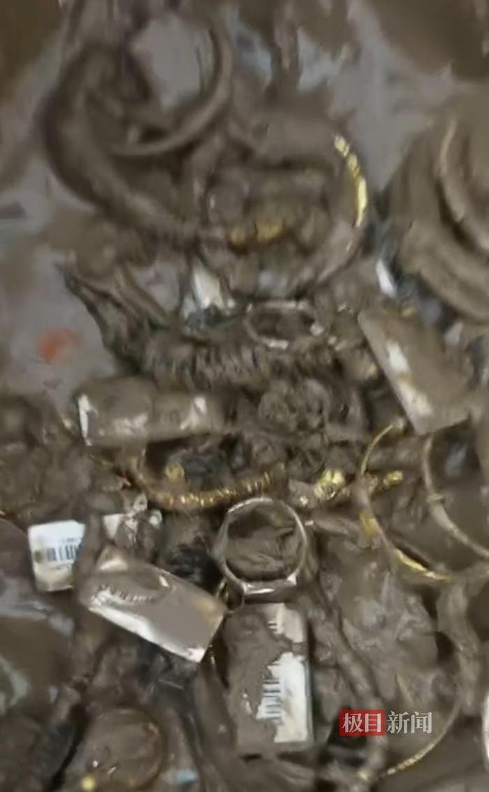 26日晚,叶先生的儿子小叶对记者称,25日、26日,全家人和员工一直在淤泥里找金银首饰。目前,店方自己找到的、居民捡到归还的金银首饰有一公斤左右。