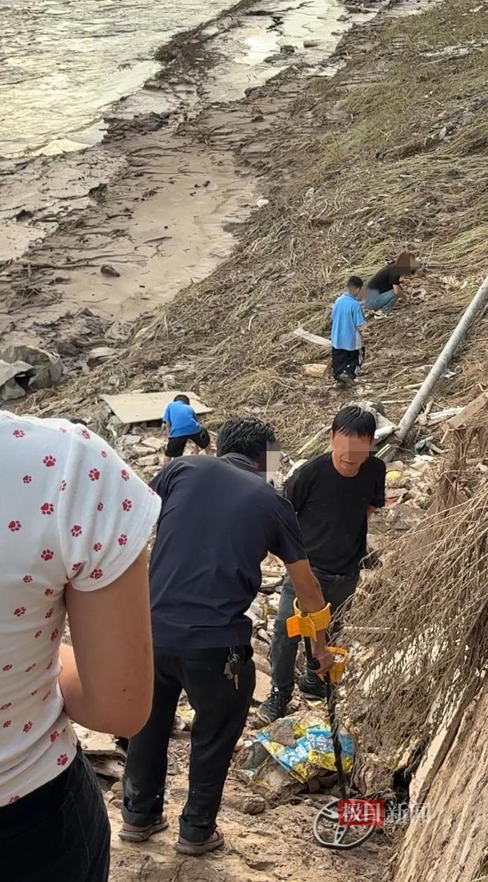 小叶提到,洪水突然袭来,断网断电,门店监控没拍到洪水冲走首饰的画面,不知道是冲到河道里去了,还是埋在了街道淤泥里。事后,他在门店附近路上、河道里发现了散架的货柜,玻璃碎了,未见首饰。洪水退去后,现场比较混乱,不少人闻讯赶来捡“黄金”。25日,他看到有居民疑似在淤泥里捡到金银首饰,“还有居民说看到他人疑似捡到首饰。目前,无人主动归还。”26日,他看到仍有居民在淤泥里找“黄金”,还有人拿着金属探测仪地毯式寻找。
